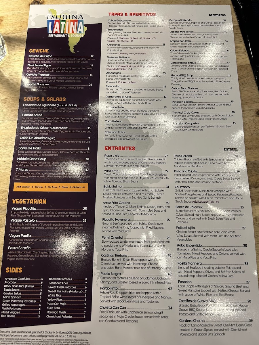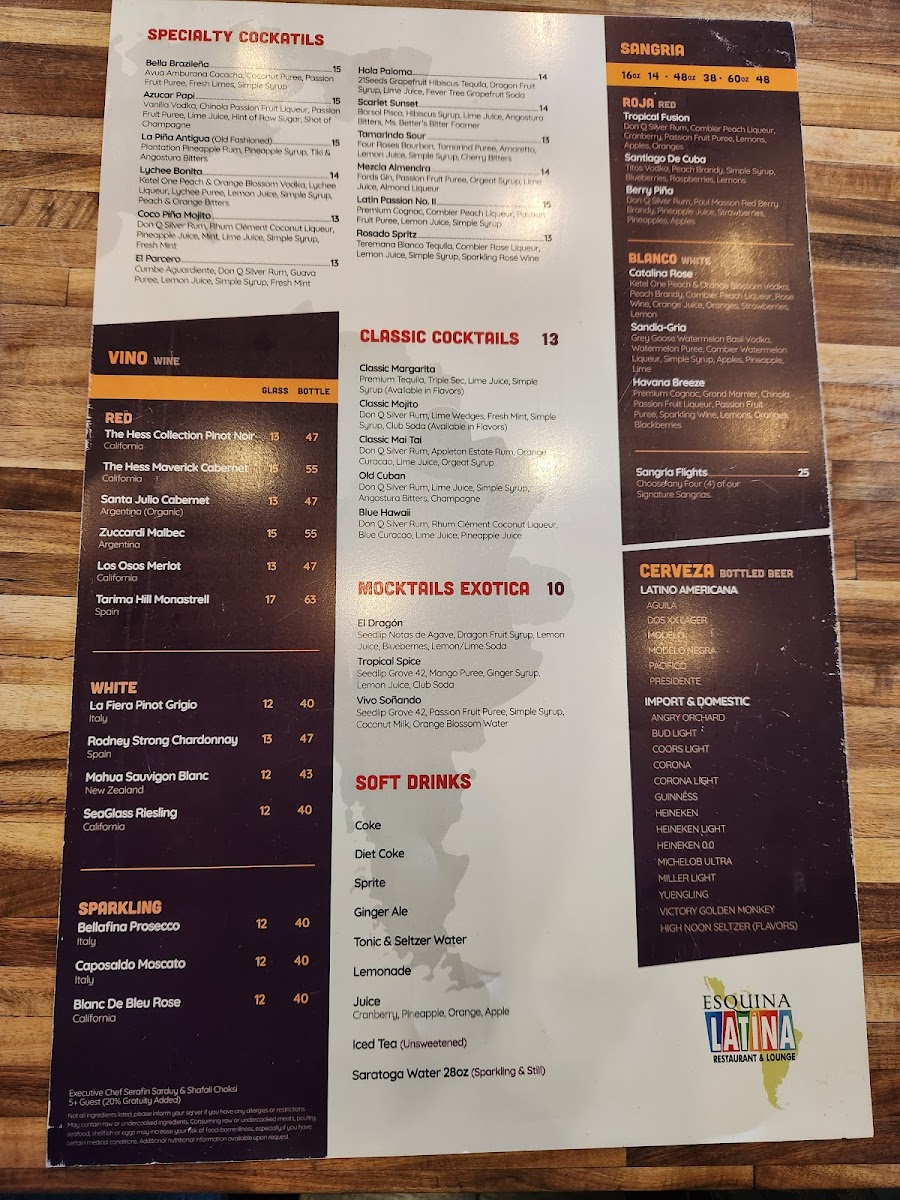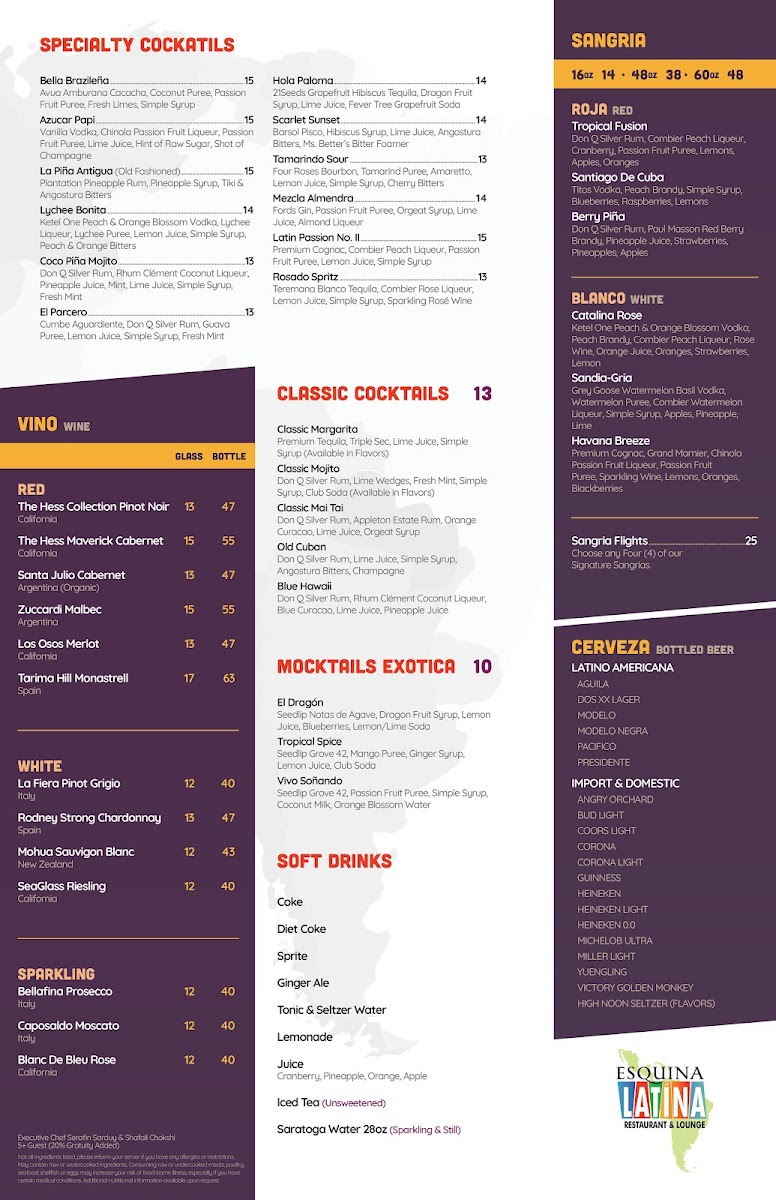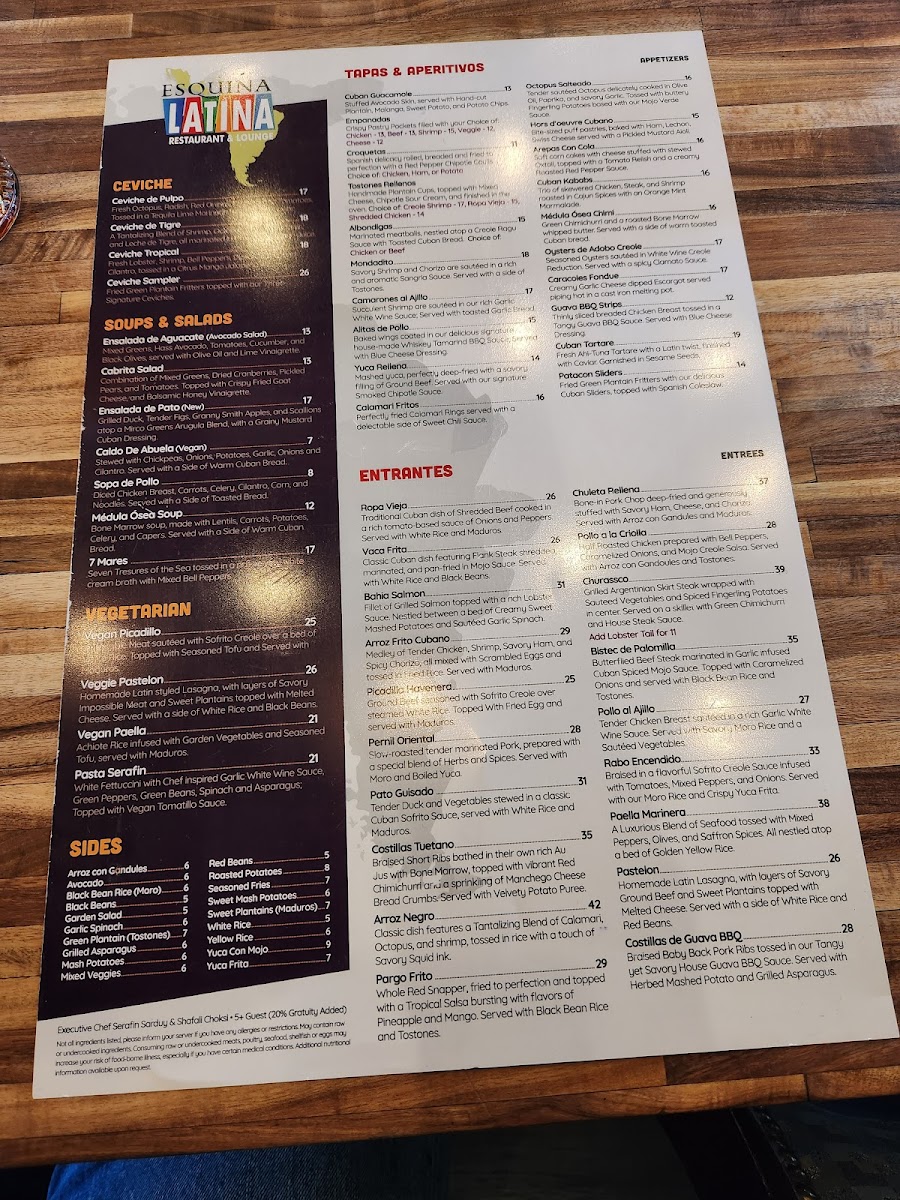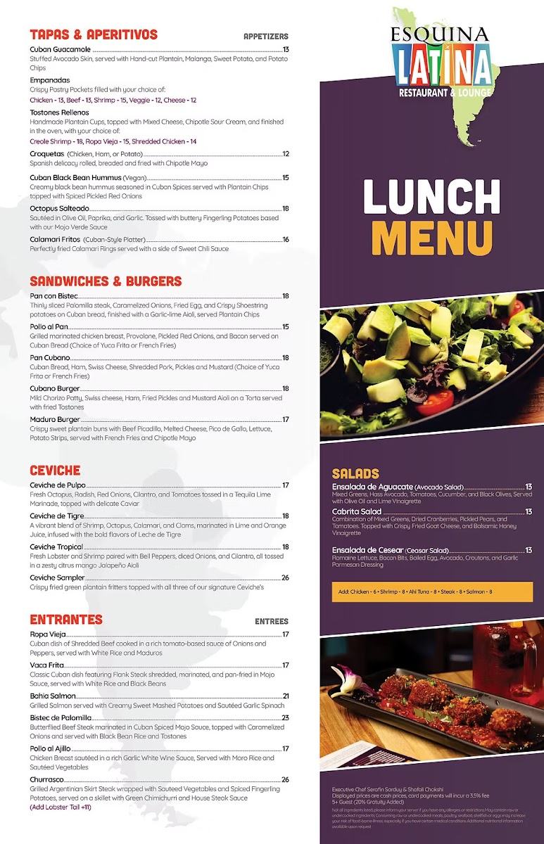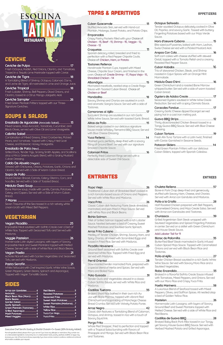 Esquina Latina Menu